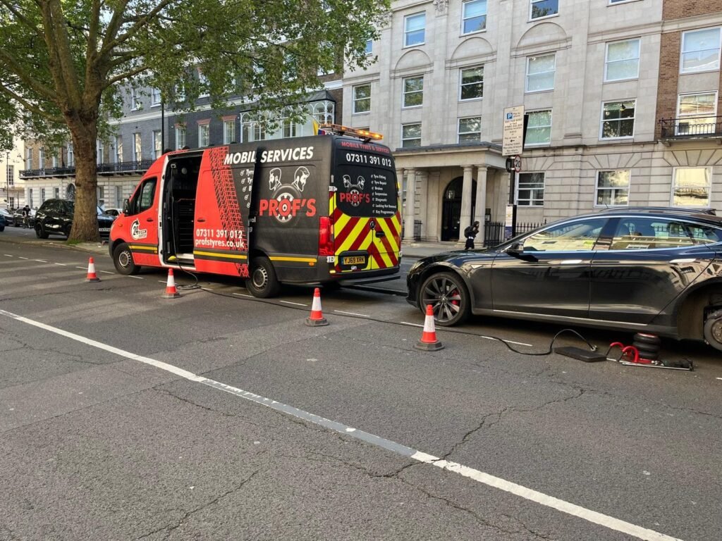 George from Prof's Mobile Tyres is Absolutely fantastic! Such a quick and professional service! I had a totally flat tyre and an over inflated tyre. I was stuck in a multistory car park with 3 kids and shopping on one of the hottest days of the year so far. Along with the help of AA roadside assistance they managed to get us out of the car park to the side of the road (the van couldn't get in the carpark because of a low ceiling) and replaced the tyre and checked the rest the rest were safe. I recommend Prof's Mobile Tyre service 100%! Thank you for a great service! 👌