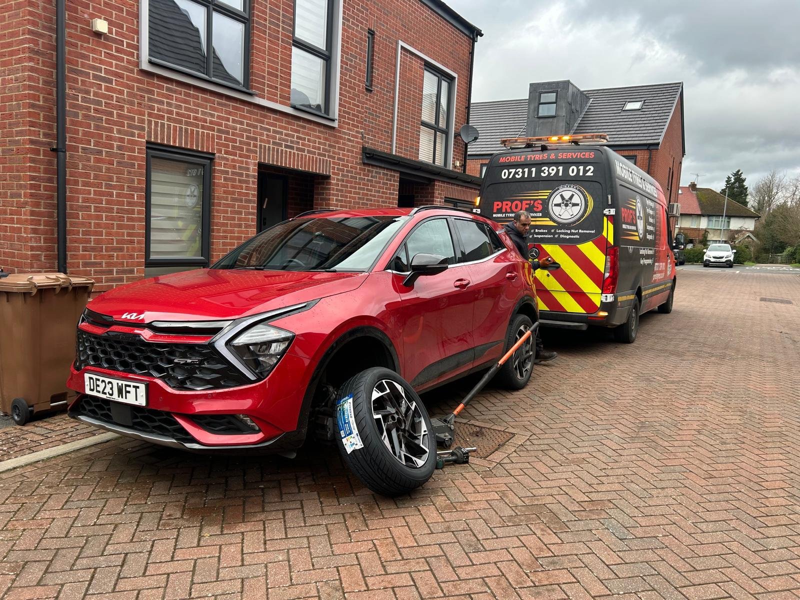 George from Prof's Mobile Tyres is Absolutely fantastic! Such a quick and professional service! I had a totally flat tyre and an over inflated tyre. I was stuck in a multistory car park with 3 kids and shopping on one of the hottest days of the year so far. Along with the help of AA roadside assistance they managed to get us out of the car park to the side of the road (the van couldn't get in the carpark because of a low ceiling) and replaced the tyre and checked the rest the rest were safe. I recommend Prof's Mobile Tyre service 100%! Thank you for a great service! 👌